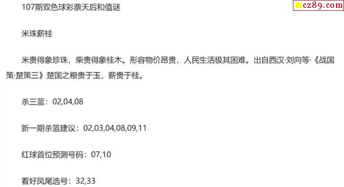 > 25年福彩双色球107期 彩票天后和值谜