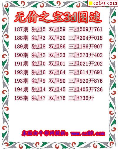 无价之宝送胆2025195期3d图谜(原创)-【3D开机号】今天_3d开机号和试机号-3D开机号查询_福彩3d开机号近10期