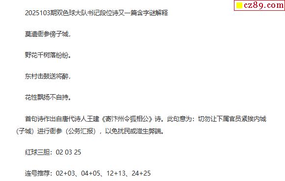 > 25年福彩双色球103期 大队书 记段位诗另一篇