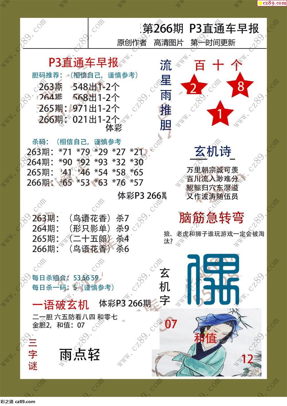 直通车早版266期体彩p3图谜