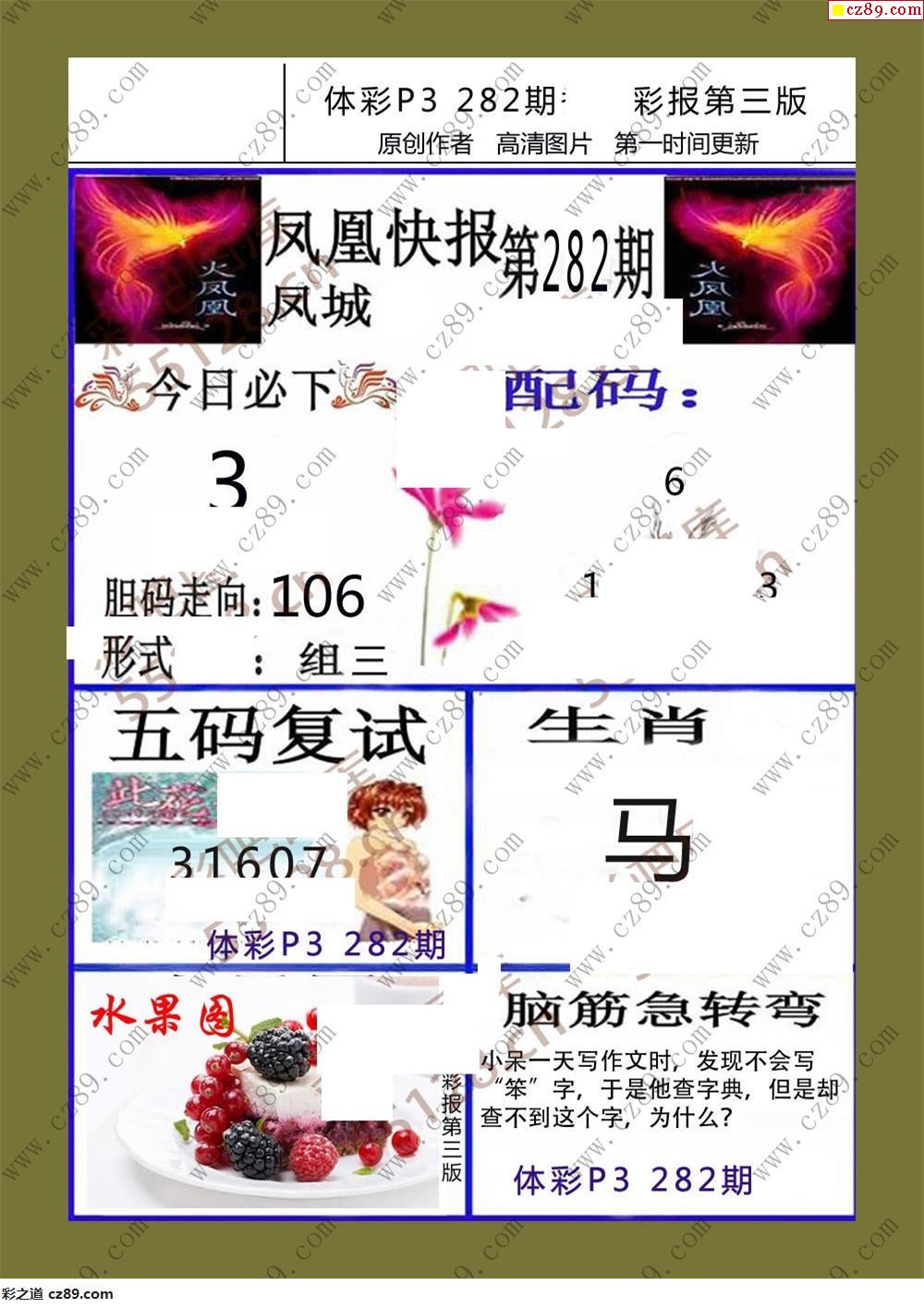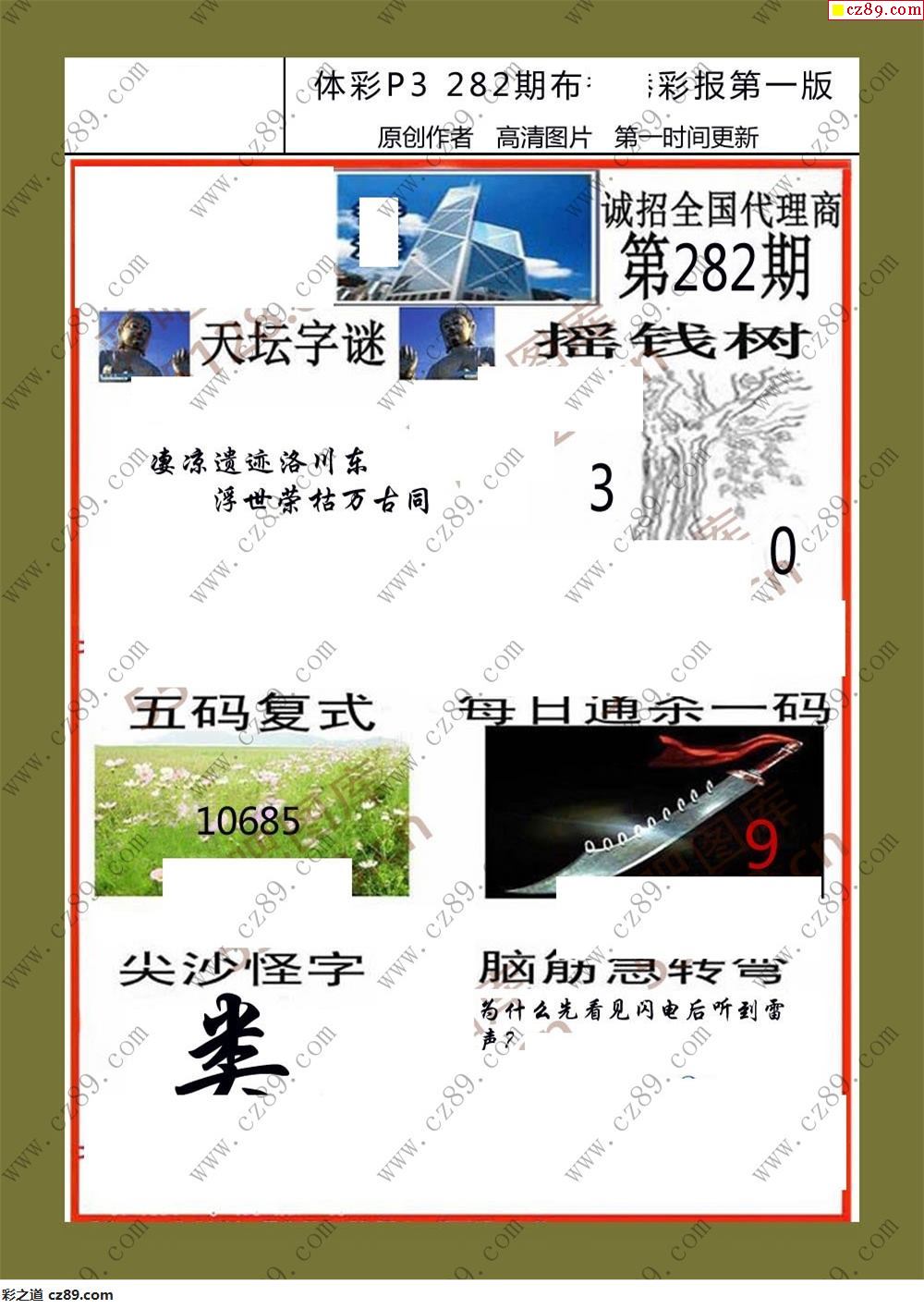香岛彩报282期体彩p3图谜-【3D开机号】今天_3d开机号和试机号-3D开机号查询_福彩3d开机号近10期