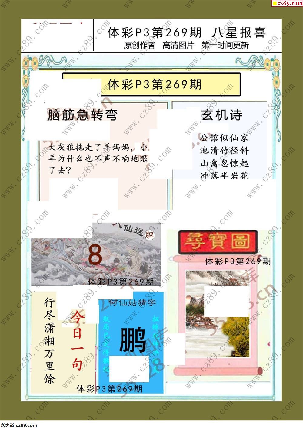 > 八星报喜269期体彩p3图谜