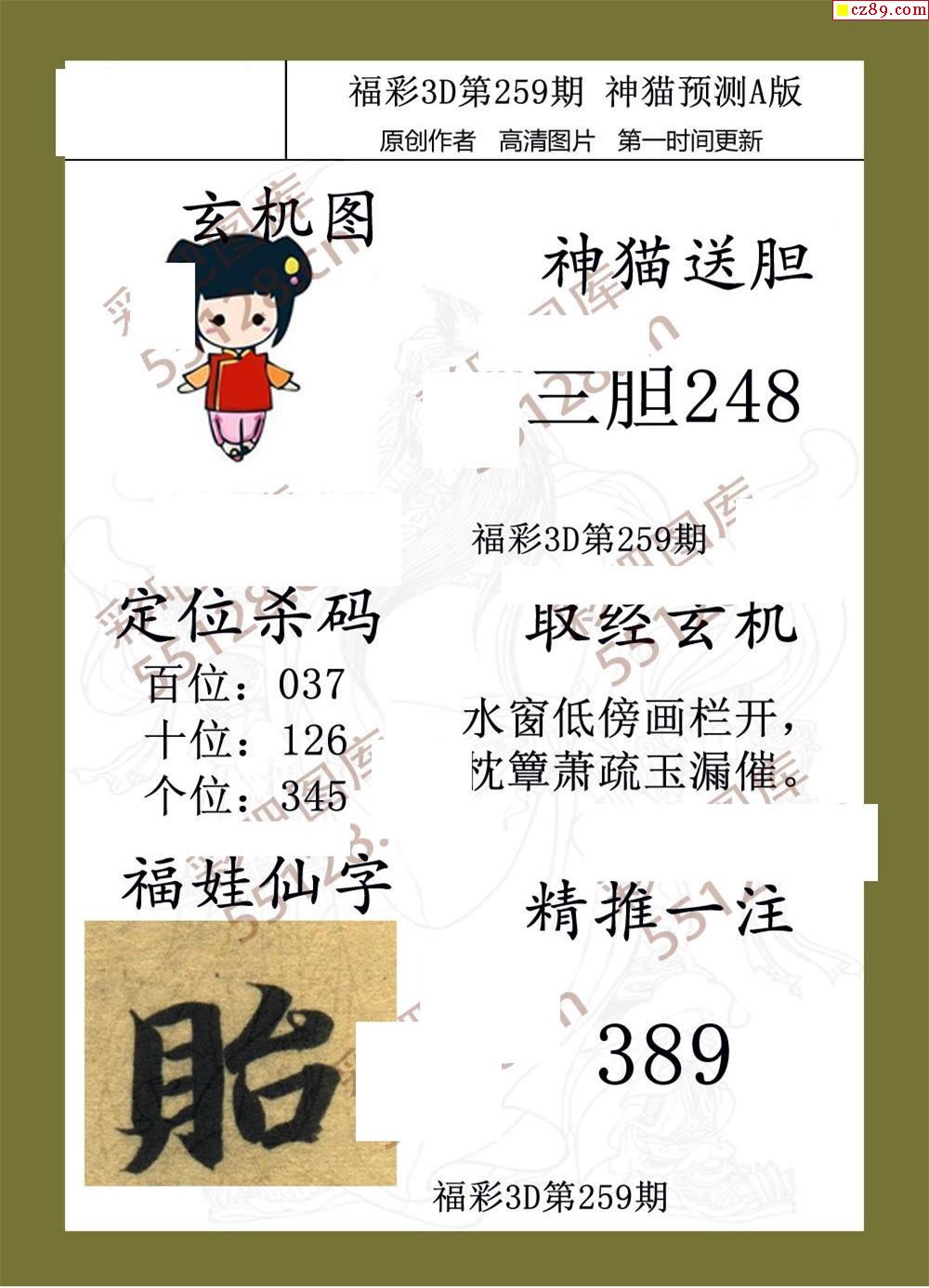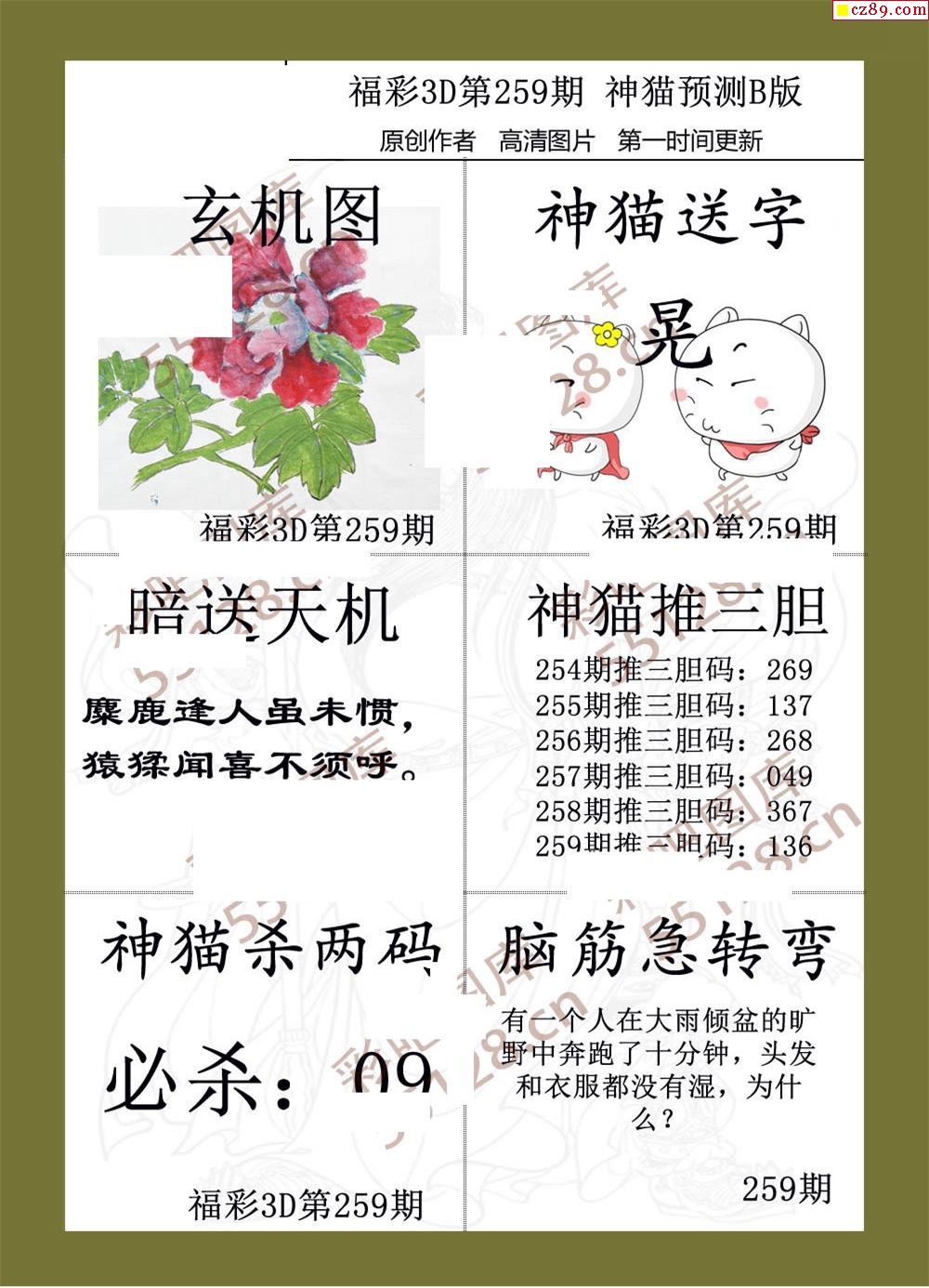 神猫预测25年259期3d字图谜-【3D开机号】今天_3d开机号和试机号-3D开机号查询_福彩3d开机号近10期