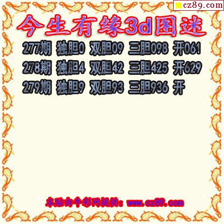 今生有缘三胆2025279期3d图谜(原创)-【3D开机号】今天_3d开机号和试机号-3D开机号查询_福彩3d开机号近10期